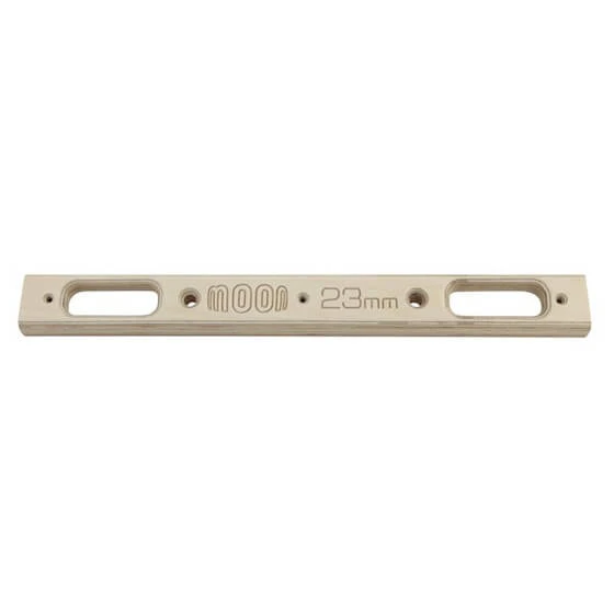 Mit den Campus Rungs von Moon Climbing nimmt man sich das Trainingsgerät zum Klettern einfach mit nach Hause. Jede Holzleiste ist 50 cm breit und passt damit perfekt über den Türrahmen oder an den Dachbalken. Die beiden jeweiligen Sprossen pro Leiste sind für 4 Finger konzipiert und dabei je nach gewählter Ausführung zwischen 18 und 29 mm tief. Keine Zeit für Ausreden mehr!